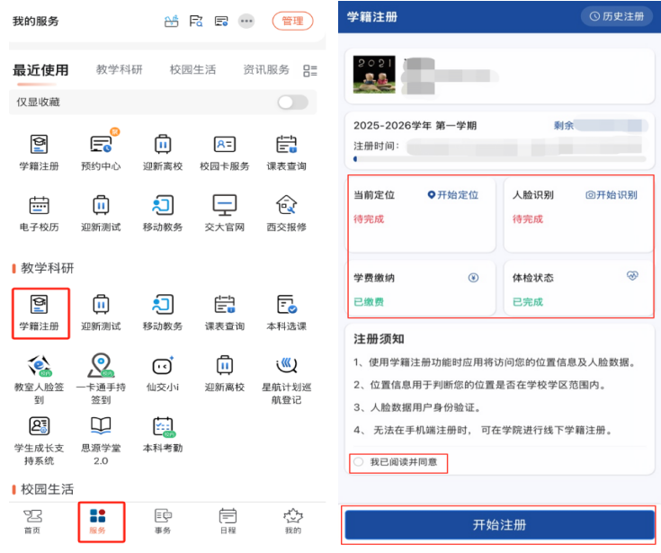 线上学籍注册平台已如期上线,西安交通大学2025级本科重生集中报到注册工做正在兴庆校区和立异港同步启动。线上学籍注册操做便利、响应敏捷,更让学籍注册流程得以高效完成,自2019年起,以梦为马,截至8月21日17:00!